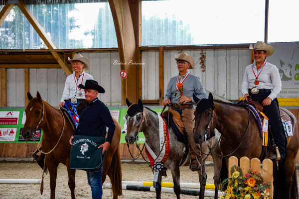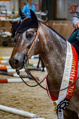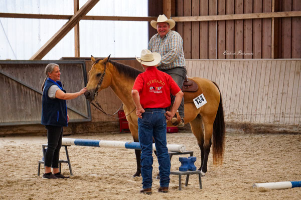 In diesem Jahr gab es außerdem noch ein besonderes Ereignis: im würdigen Rahmen der Meisterschaft wurde das Erfolgspferd PR Keens Cody von unserem Vereins- und Vorstandsmitglied Malte Ziegler offiziell aus dem Sport verabschiedet. Geboren im Jahr 2002 auf Rügen zog Cody als Hengst zusammen mit Malte in die Turnierwelt ein und konnte bereits 2006 seine ersten Siegerplätze in der Jungpferde Basis und im Jungpferde Reining zur LM ergattern. Es folgten 7 Auszeichnungen zum Champion in der EWU Hessen Trophy, die Pferde-Medaillen Gold in der Pleasure und Silber in der Western Riding sowie zuletzt die Auszeichnung zum Mannschaftsmeister Hessen im Jahr 2019. Ein großer Traum war es noch die Goldmedaille in der Western Riding zu erreichen, doch der Trainingsmangel durch Corona und Codys Spat führten dazu, dass Malte ihre gemeinsame Turnierkarriere schweren Herzens beenden musste. Wir gratulieren euch ganz herzlich zu eurer tollen gemeinsamen Sportkarriere und wünschen Cody eine schöne und erholsame Rente!